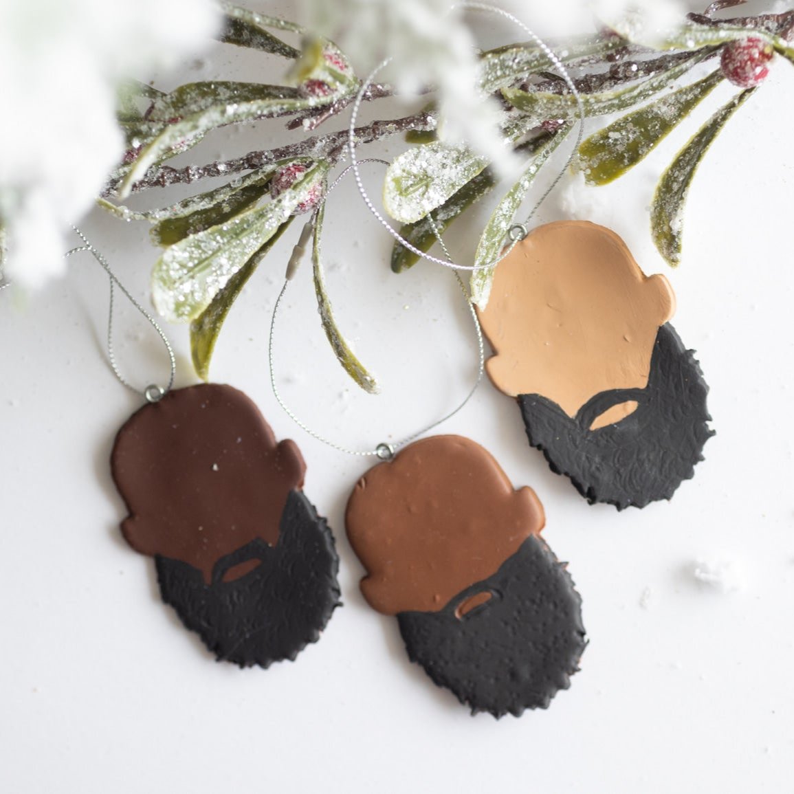 Representation matters and we wanted to spread the joy of Christmas with our Christmas ornaments. Make your tree complete with our Black King Ornament. This bald man with a full beard and mustache will make the perfect addition this holiday season. Choose from 3 different skin tones. Each ornament is unique and handcrafted with care from a black owned business.